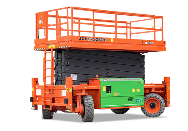The Dingli JCPT2223DC is a high-reach, powerful Fully Electric Scissor Lift categorized as a “Large Scissor.” It is engineered to provide vertical access up to 72 ft 2 in (22.00 m) in environments demanding zero noise and zero emissions. The “DC” designation indicates its powerful, battery-driven system, utilizing a 48V/630Ah high-capacity lead-acid battery pack (Lithium battery version is also available). This machine boasts a massive platform, a robust 1,653 lb (750 kg) unrestricted capacity, and features four-wheel drive and steering for excellent maneuverability and rough-terrain performance, all while maintaining environmentally friendly operation.
