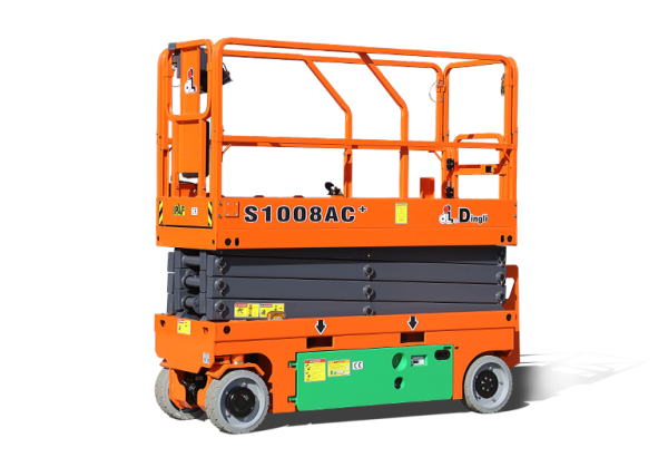 The Dingli S1008AC+ is an advanced, compact Electric Scissor Lift categorized as an “AC+ Scissor.” This model is part of Dingli’s premium “Performance+” and “Reliability+” series, featuring extensive innovations focused on maximizing access in confined spaces, energy efficiency, and durability. It offers a maximum indoor working height of 32 ft 10 in (10.00 m) while maintaining an ultra-narrow overall width of just 2 ft 9 in (0.83 m). Key features include the electric actuator steering system, a Gravity Down Energy Recovery System, and an integrated four-in-one motor controller.