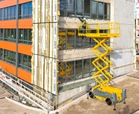 Industrial installation, structural steel, and envelope work requiring high reach and capacity off-slab.