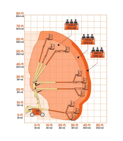 ✅ Articulating Jib (“AJ”): The 5 ft (1.52 m) jib provides critical extra articulation, allowing the operator to position the platform precisely up, down, and around complex obstacles.