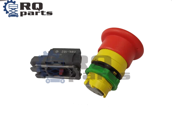 Activation of this switch cuts all power to the machine’s drive and lift functions, ensuring compliance with strict international safety standards (like CE and GB14048.5-2017). This specific assembly is a crucial safety part, often paired with a separate contact block (like 00003046) to form the complete Emergency Stop circuit.