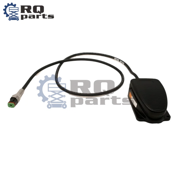 This assembly functions as the mandatory “dead man” or enabling pedal. It requires the operator to maintain active pressure on the pedal before the primary lift functions (drive, steer, and boom movement) can be enabled via the hand controls. This safety protocol ensures the operator is prepared and stable. Releasing the pedal instantly halts primary functions, making it essential for site safety and regulatory compliance.