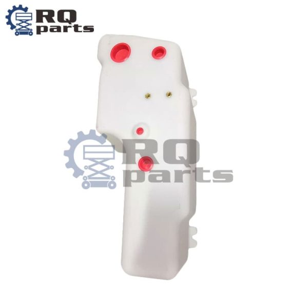 This hydraulic tank holds the essential hydraulic fluid needed to power the lift, steer, and braking systems of the scissor lift. The tank is manufactured to a specific capacity (6.5 U.S. Gallons, or approximately 24.6 liters) and includes features like mounting brackets, ports for the pump, return line, and breather/filter assemblies, which must precisely match the machine’s design for correct fitment and function.